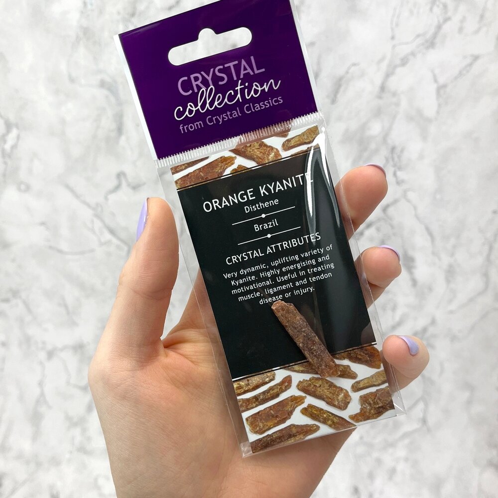 An Orange Kyanite crystal from Brazil. An uplifting variety of kyanite with attributes of energetic and motivating qualities.