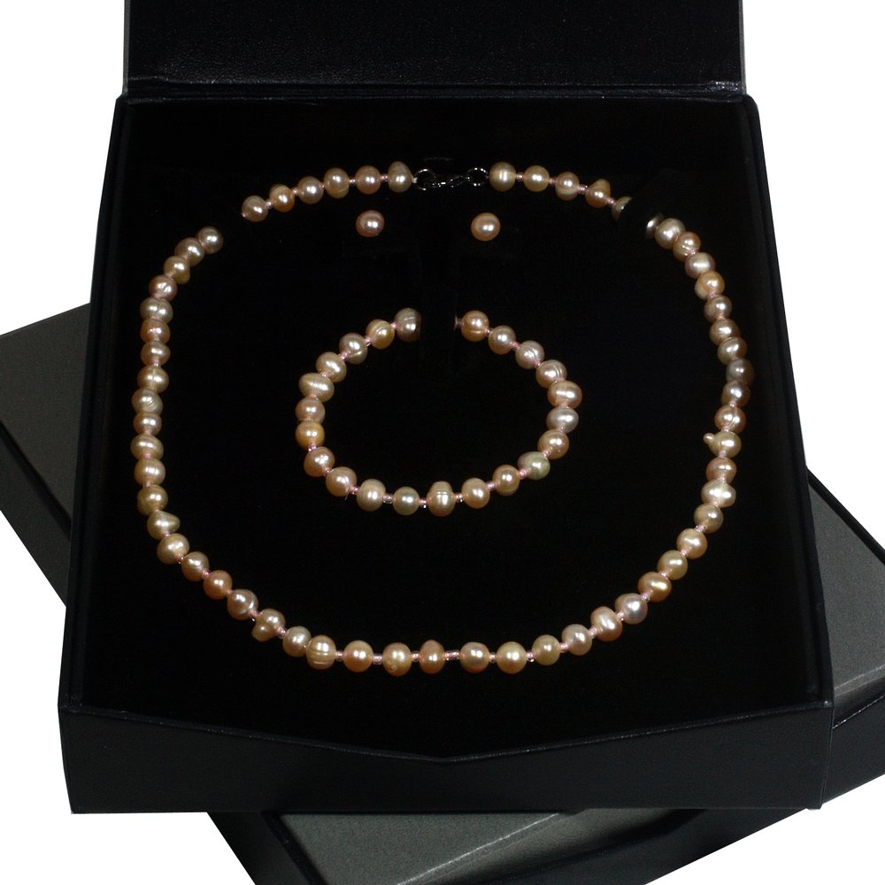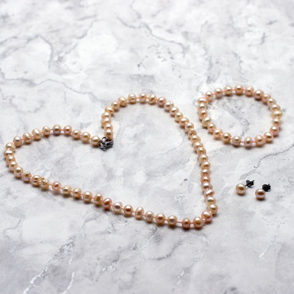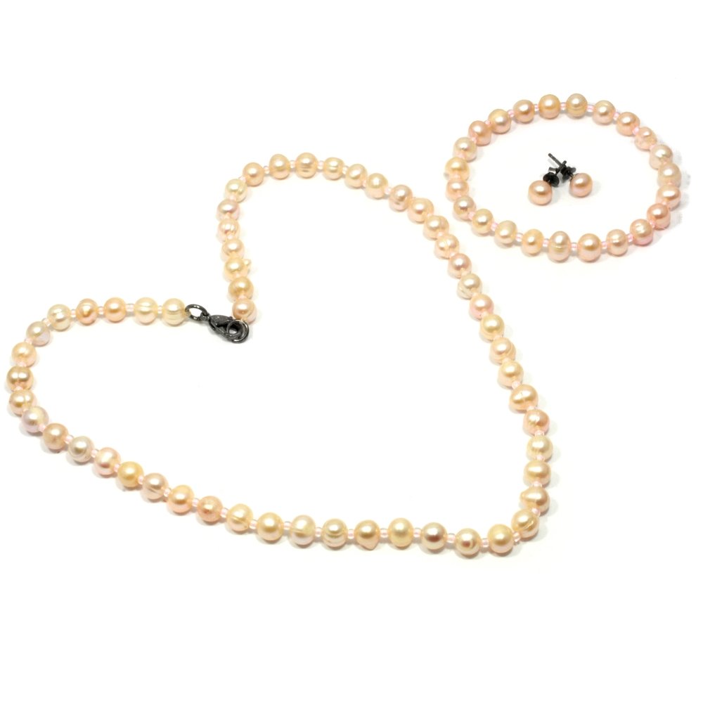 The beautiful sheen and soft colour of this Peach Pearl Jewellery Set gives you a romantic and stylish look.