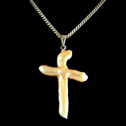 This cross pendant features natural pearl with silver fittings. Pearl symbolises purity of mind and spirit. They are often associated with creation, natural beauty and peace. Whether for yourself or a loved one, this pearl pendant makes a great gift.