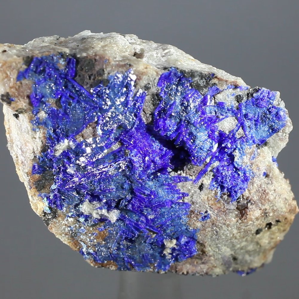 Azure blue Linarite. An excellent example of this rare lead sulphate from Tierra Amarilla, Copiapó Province, Atacama, Chile.