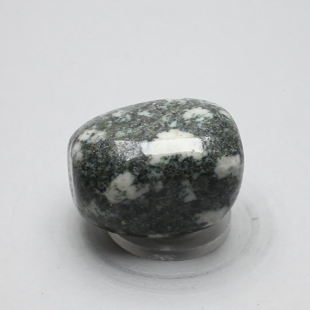 This exquisite Preseli Bluestone Polished TumbleStone found in the Preseli Hills of Wales. Granite-like in appearance, it is full of 'night sky' inclusions of grey feldspar and has a lustrous finish.
