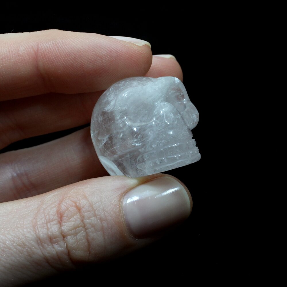 Add a little mystery to your room with this clear Quartz Crystal Skull. This classic crystal skull has a great chunky shape and catches the light beautifully.