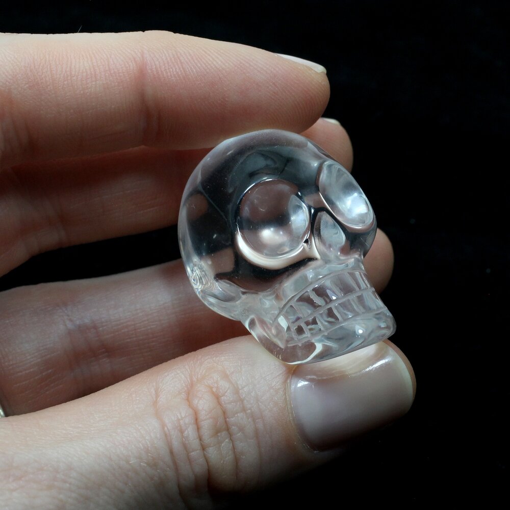 Add a little mystery to your room with this clear Quartz Crystal Skull. This classic crystal skull has a great chunky shape and catches the light beautifully.