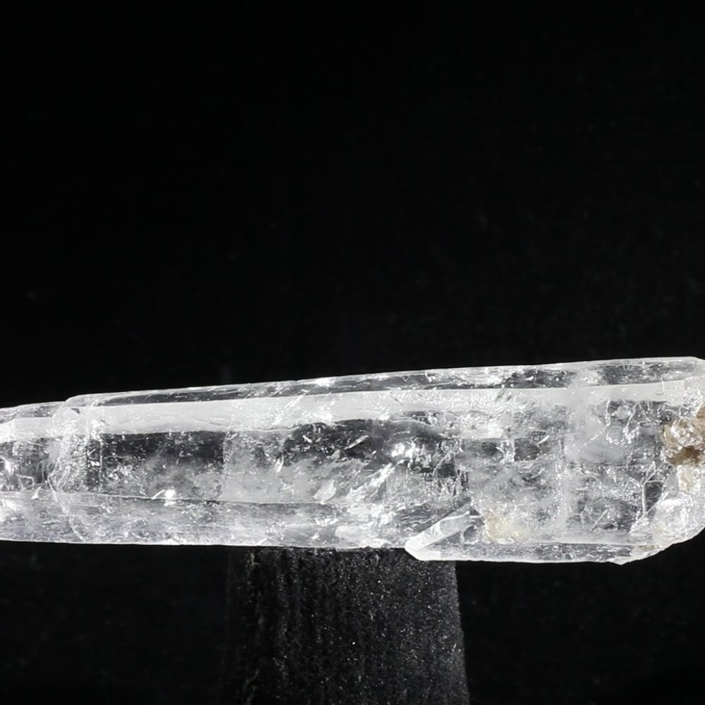 This Quartz Laser, originating from the region of Diamantina in Brazil, shows off the wonderful clarity and shape of laser quartz crystals. Laser quartz develops in slender points that taper to a pointed termination. The angles of the sides of the crystal are often curved and have unique etchings and/or markings upon them.