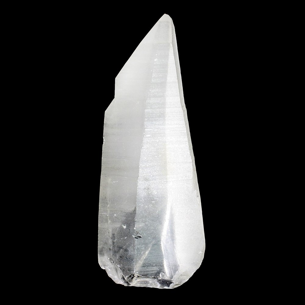 This Quartz Laser, originating from Brazil, shows off the beautiful clarity and shape of laser quartz crystals. The crystal narrows from the wide base to a small apex allowing for precise work in healing. These crystals were said to have been planted in remote locations by the advanced ancient civilization known as the 'Lemarians'.