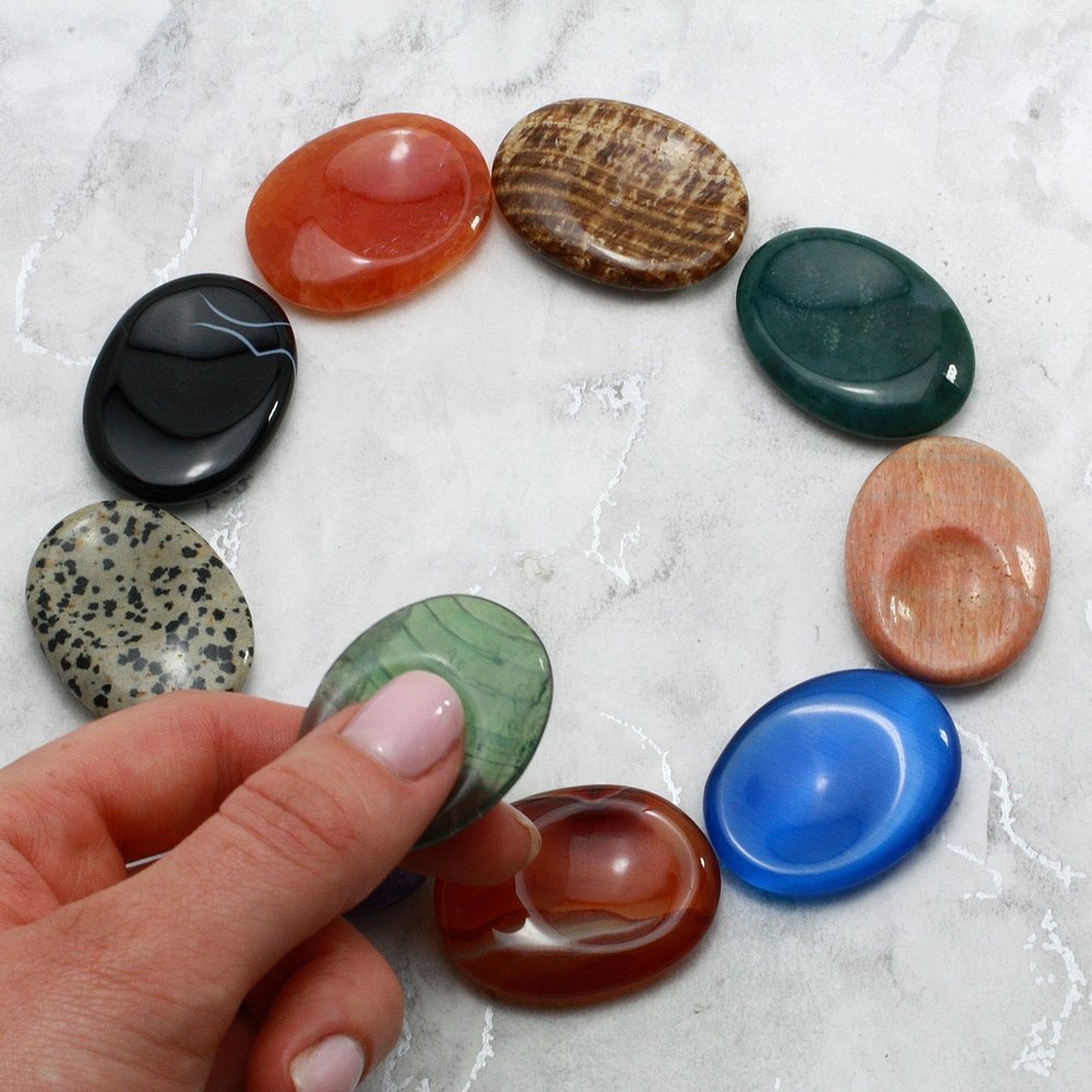 Thumb Stones are also known as Worry Stones or Focus Stones. When you hold these stones, think positive thoughts and on all that you want in life.