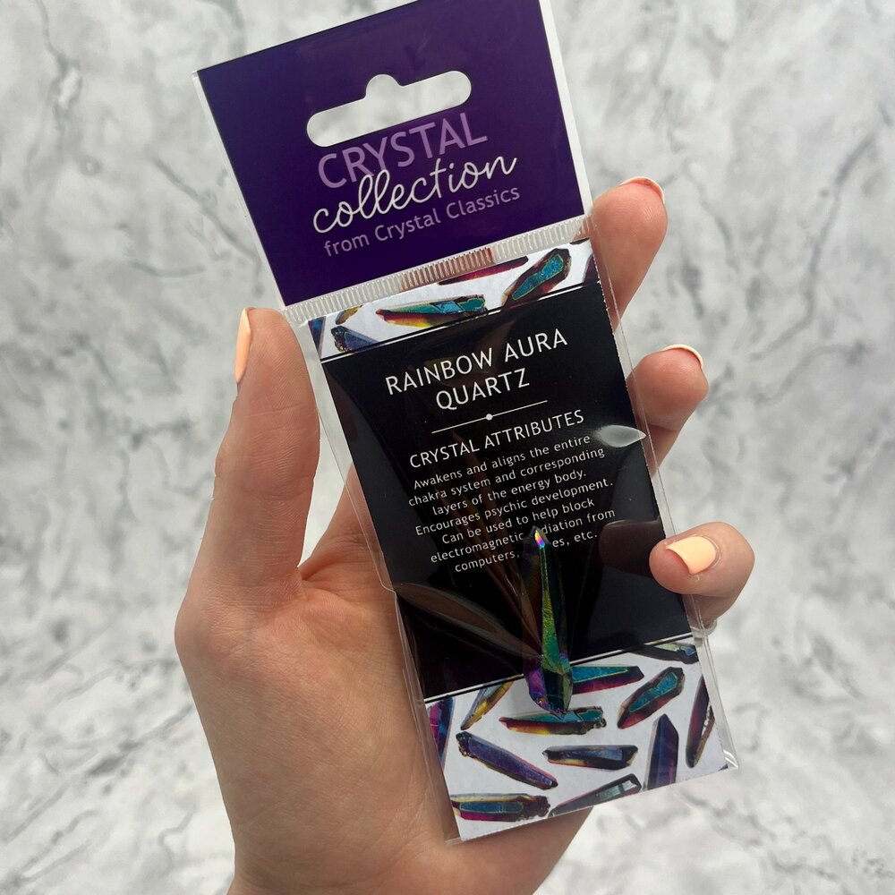 This crystal comes with a handy reference card describing all key mineral properties and crystal healing attributes. For more information visit our CrystalAge.com Aura Quartz Stone Type page.