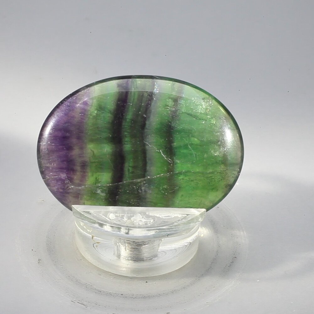 This Rainbow Fluorite Thumb Stone has been carefully shaped and polished with a thumb-sized indent so that you can hold them to focus on the crystal energy.