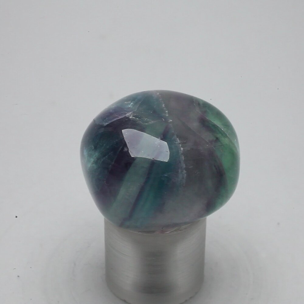 Rainbow Fluorite shows rings of purple, white and green crystal running through it which makes it a popular decorative stone and makes a striking addition to any space.