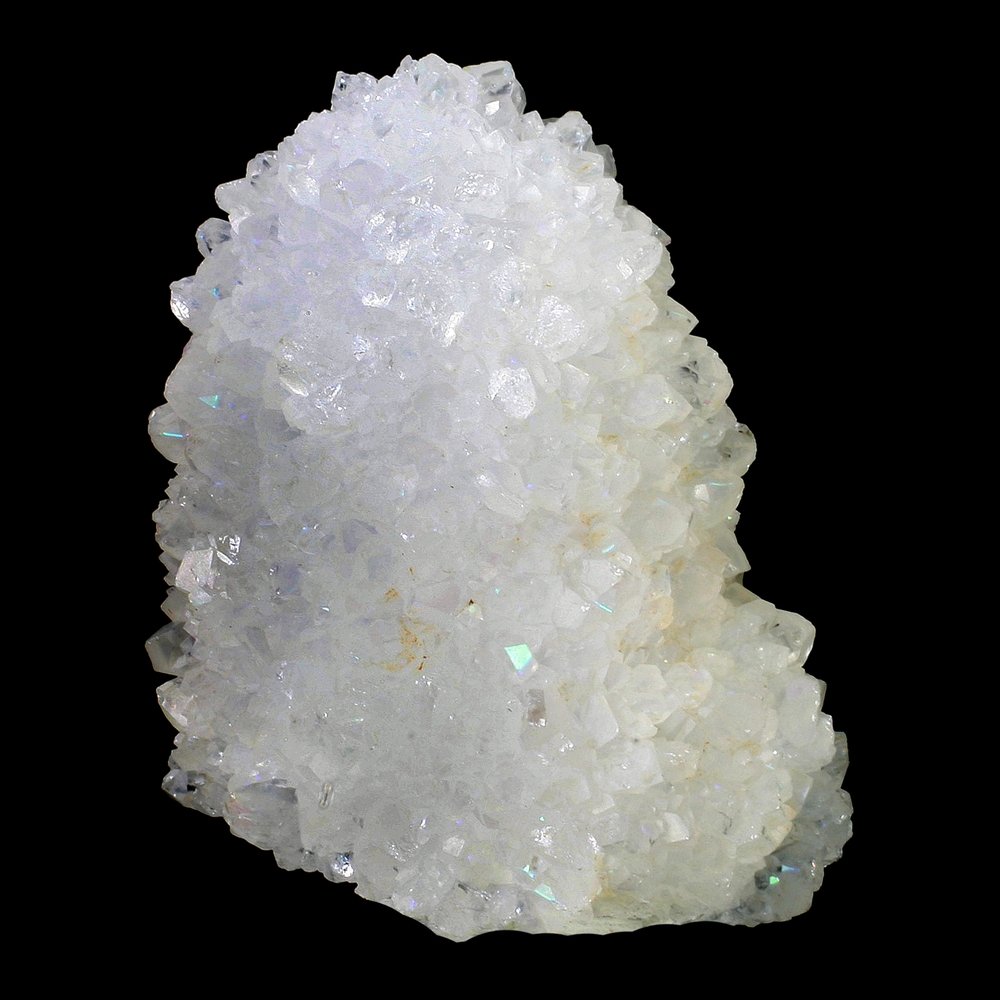 With its sparkling rainbows, this rainbow quartz cluster makes a fine specimen. This quartz cluster has tightly packed crystals varying from large to small. They contain many rainbows and catch the light beautifully in any location.