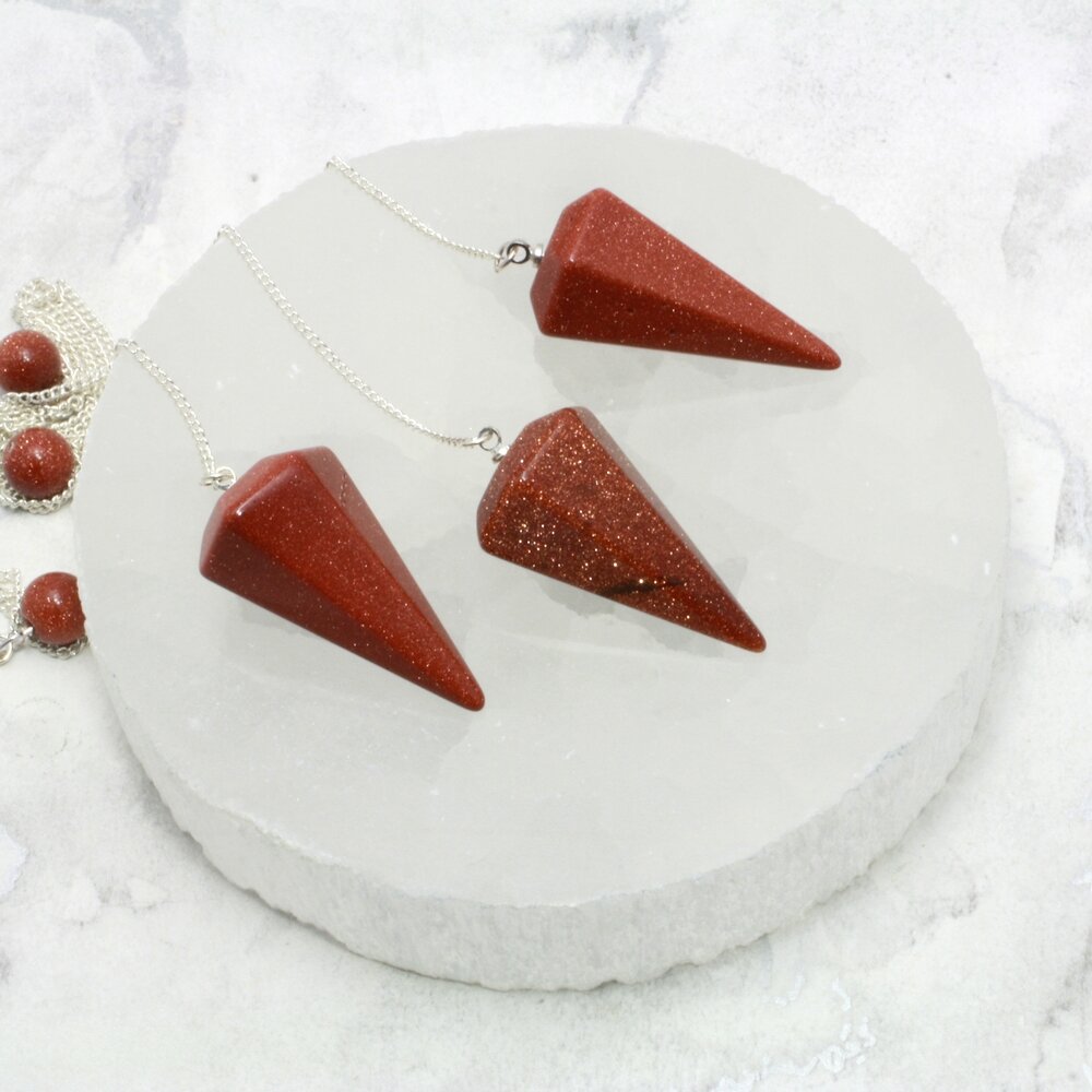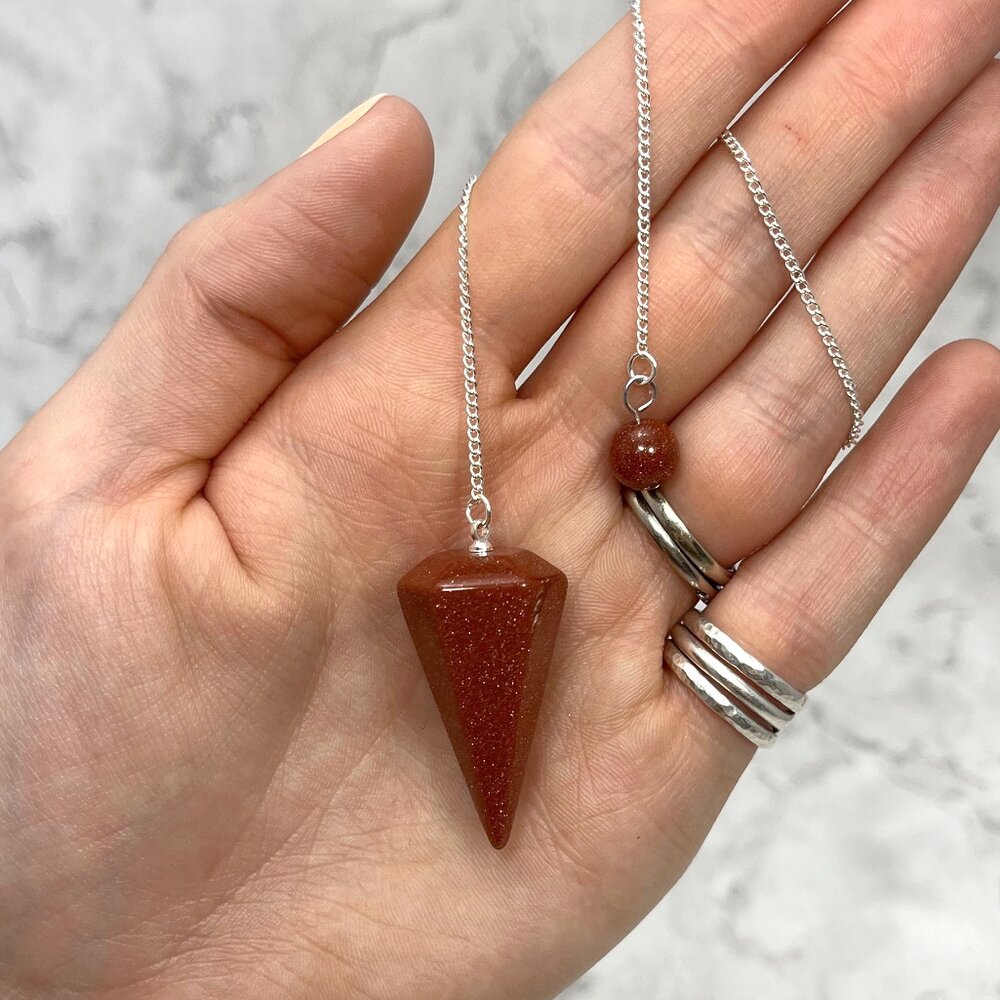 Said to be the simplest spiritual tool, use this Red Goldstone Crystal Pendulum to help find a lost item or discover negative energy around you. Red Goldstone is associated with wealth and plenty.