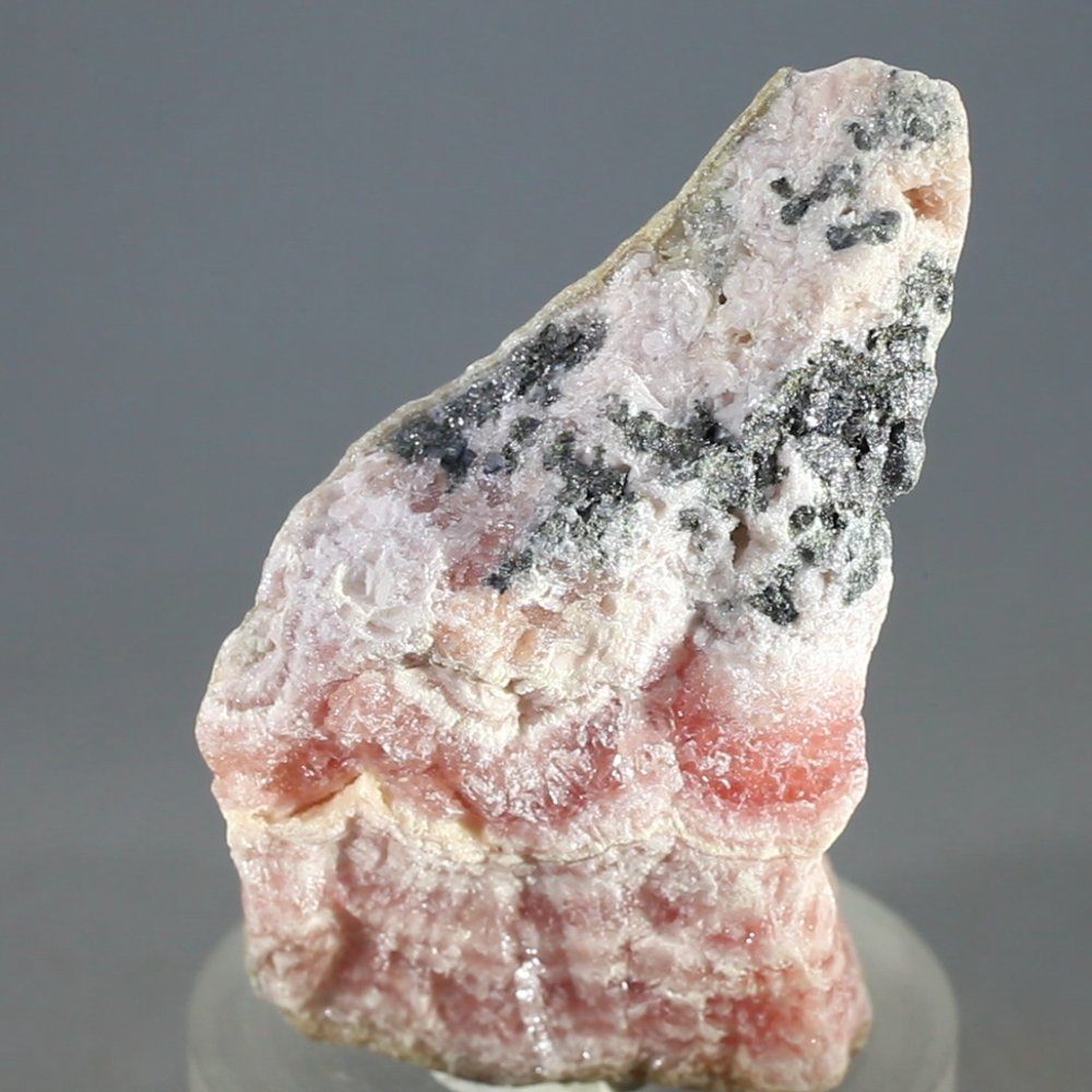 Classic Rhodochrosite, rose pink with bands of cream, often in a radiating pattern. These natural pieces come from the famous Capillita Mine, Catamarca, Argentina.