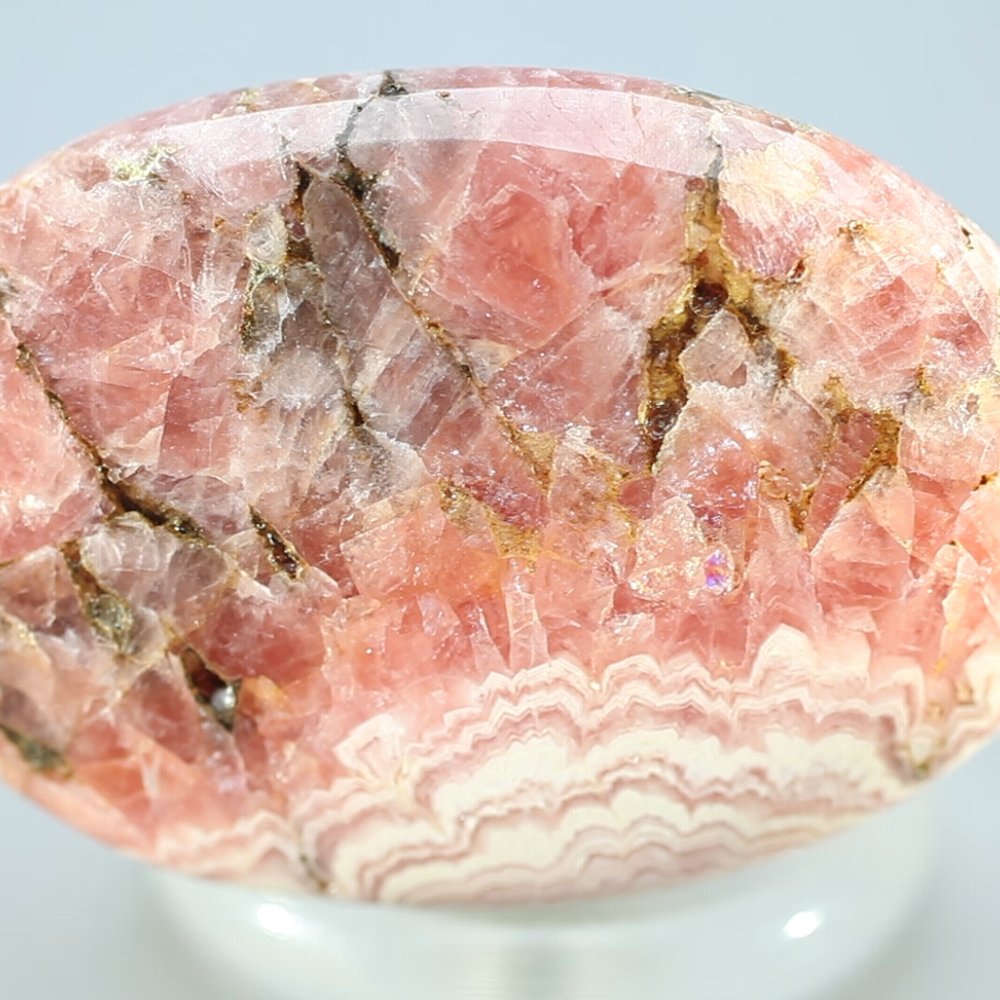 Vibrant and softly patterned, this Rhodochrosite palm stone is a great choice. This fine palm stone has a beautiful range of pinks, ranging from deep rose to pale powder pink. It is very attractive and the perfect size to hold or place on the body during crystal healing.