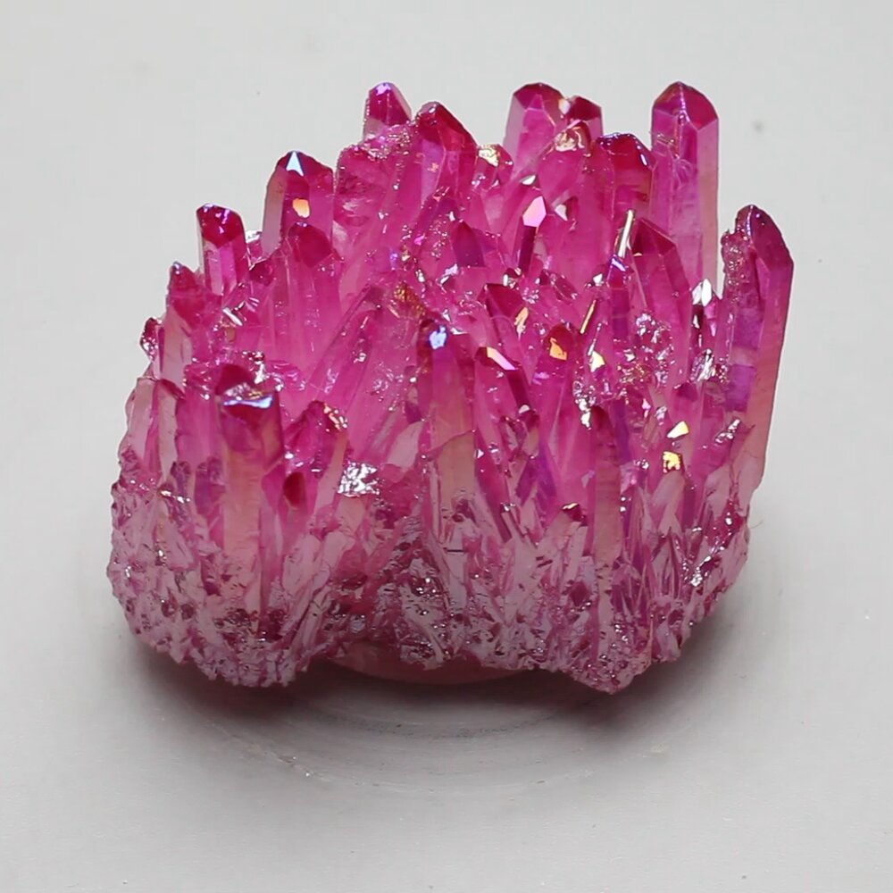 The highest quality Quartz in combination with some exotic precious metals has produced an unusual and wonderful range of Aura colours which we have named 'Ultra Aura'. The colours range from the palest lilac's through to rose pink's and vibrant greens and yellows.