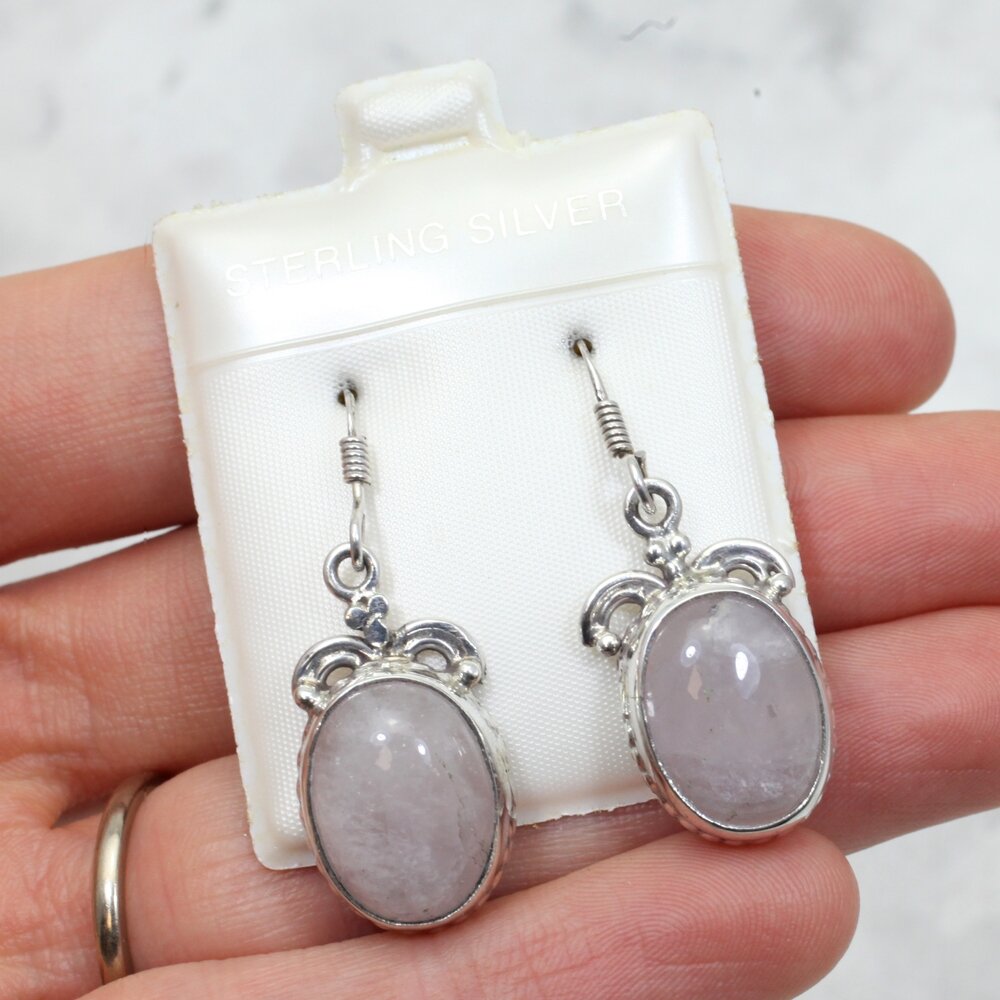 Rose Quartz 925 Silver Ornate Drop Earrings.