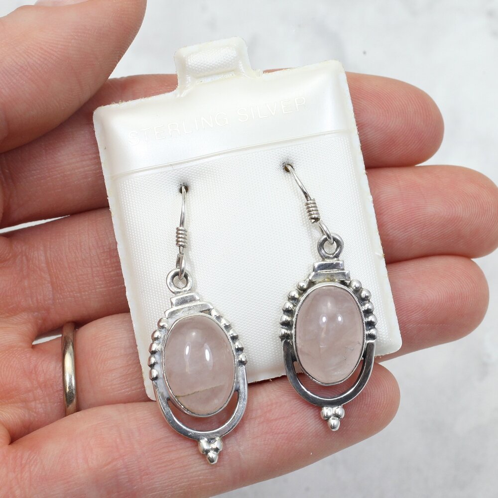 Rose Quartz 925 Silver Ornate Drop Earrings.