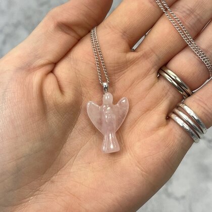 This Rose Quartz Angel Pendant is set with a 925 sterling silver loop.