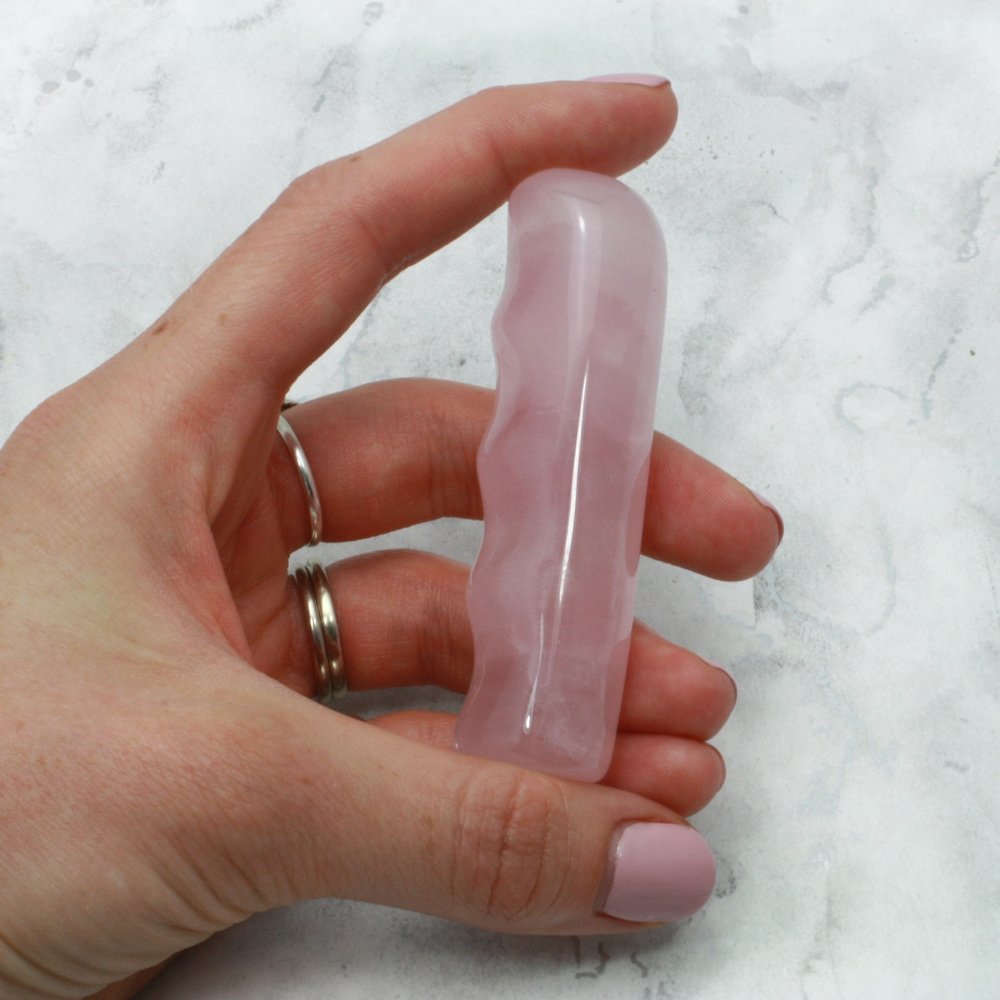 This natural Rose Quartz Crystal Massage Wand is polished and formed to fit comfortably in your hand. It has four smooth indented grooves for your fingers forming a power grip in order to offer you the best massage wand, especially useful when used in conjunction with massage oils.