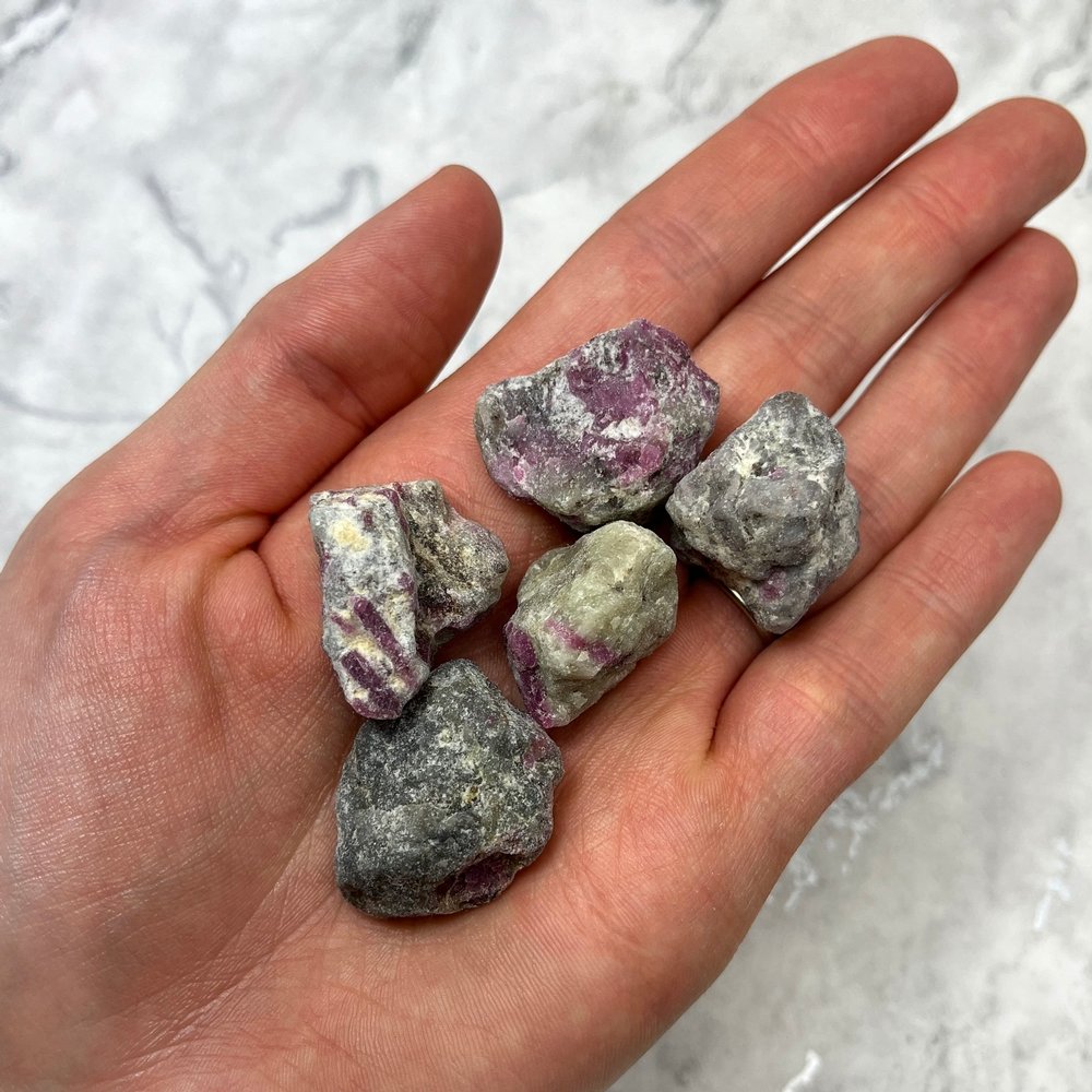 A natural specimen of Ruby in Feldspar. Ruby is believed to bring strength, power, courage, wealth and success. It boosts the life force energy increasing passion and firing the enthusiasm.