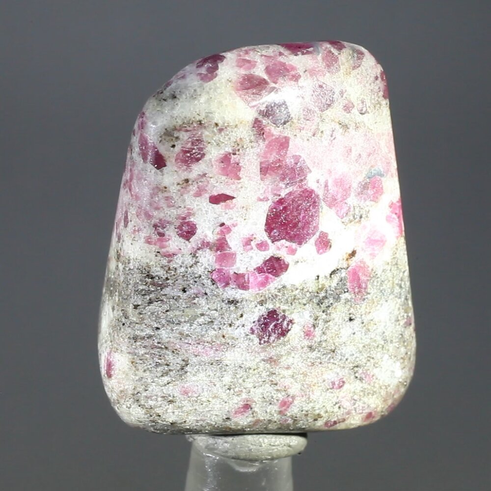 A beautifully polished Ruby in Feldspar Speciality Tumble Stone. Ruby is believed to bring strength, power, courage, wealth and success. It boosts the life force energy increasing passion and firing the enthusiasm.