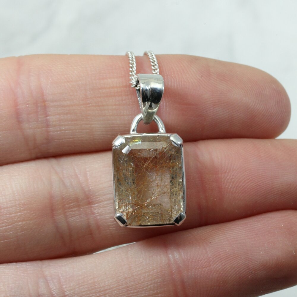 Rutilated Quartz 925 Silver Pendant.