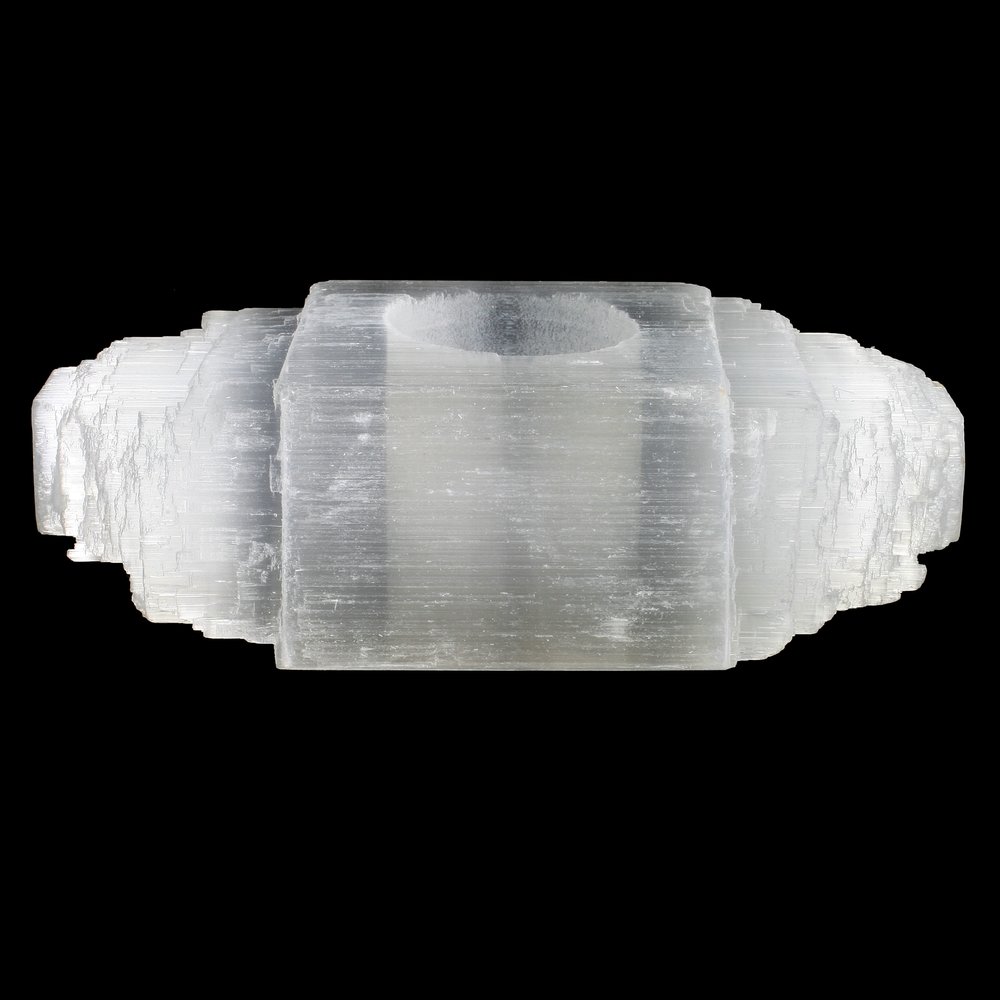 Bring natural crystal beauty into your life with this attractive log shaped Selenite Tea Light Holder. This holder places a tea light in a circle of selenite for a subtle glow.