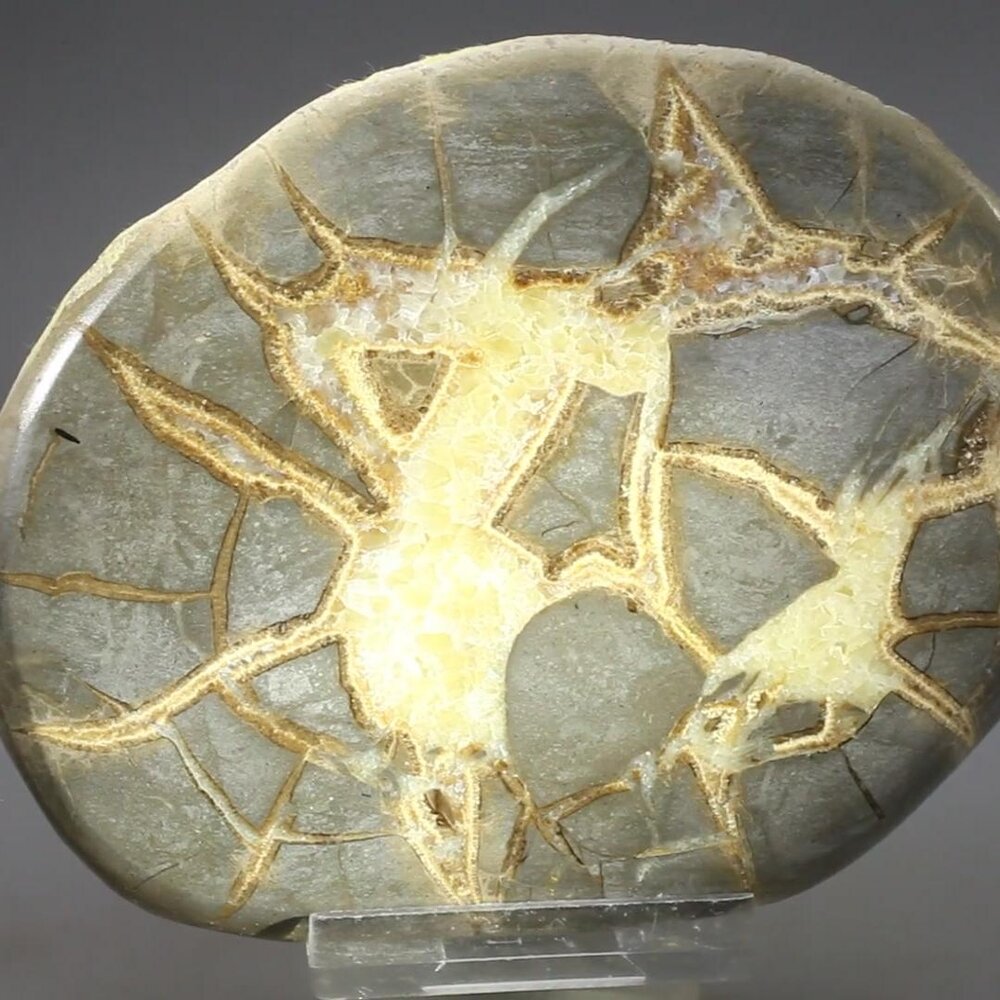 Septarian is an amalgam of aragonite, brown calcite and naturally occurring concretions that retains a unique blend of their attributes.