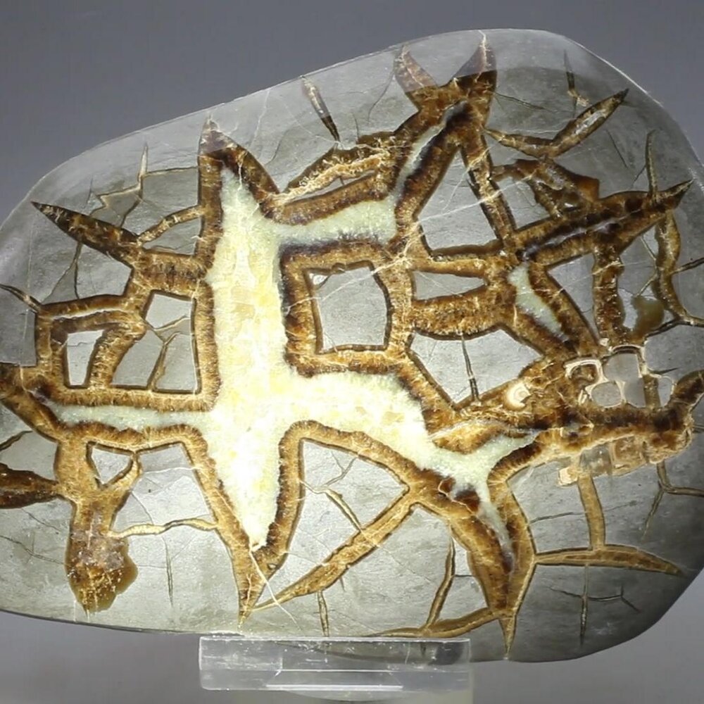 Septarian is an amalgam of aragonite, brown calcite and naturally occurring concretions that retains a unique blend of their attributes.