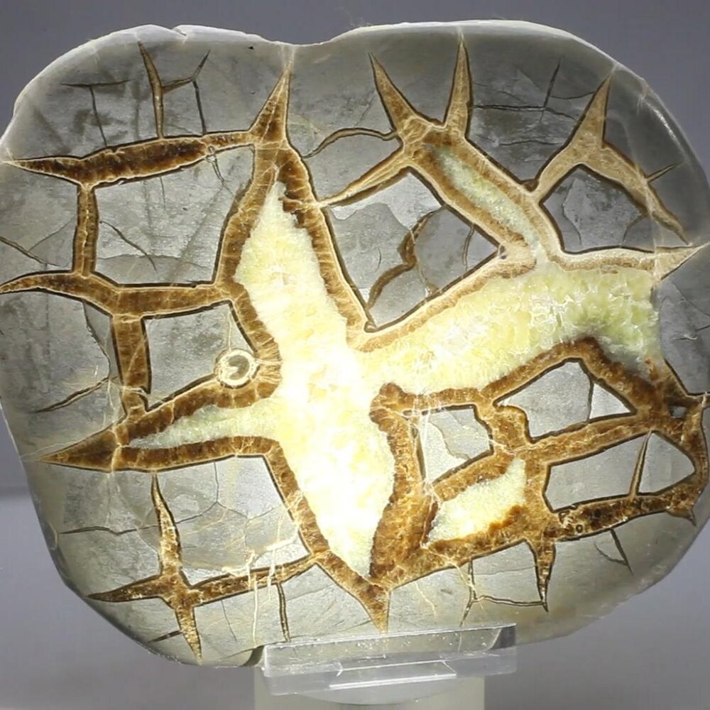 Septarian is an amalgam of aragonite, brown calcite and naturally occurring concretions that retains a unique blend of their attributes.