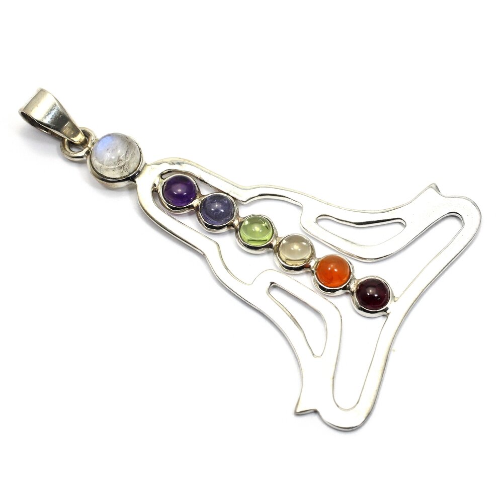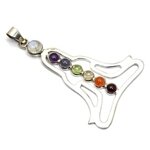 This Buddha 925. Sterling Silver Pendant contains stones selected for their affinity with each of the Seven chakras.