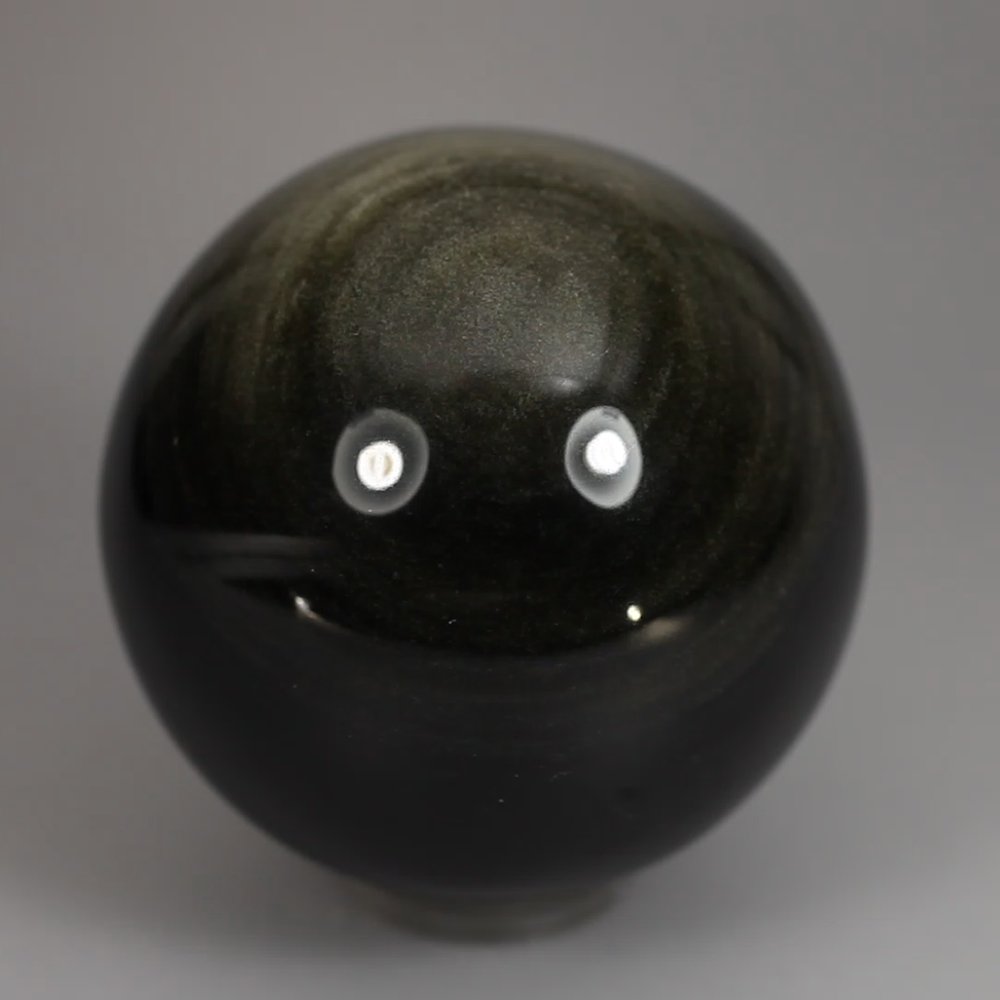 Obsidian is believed to encourage strength, integrity and grounded energy. It is said to dissolve fear and shock, making it an excellent crystal for difficult times. Obsidian is a traditional stone for scrying and this sphere is ideal for that purpose.