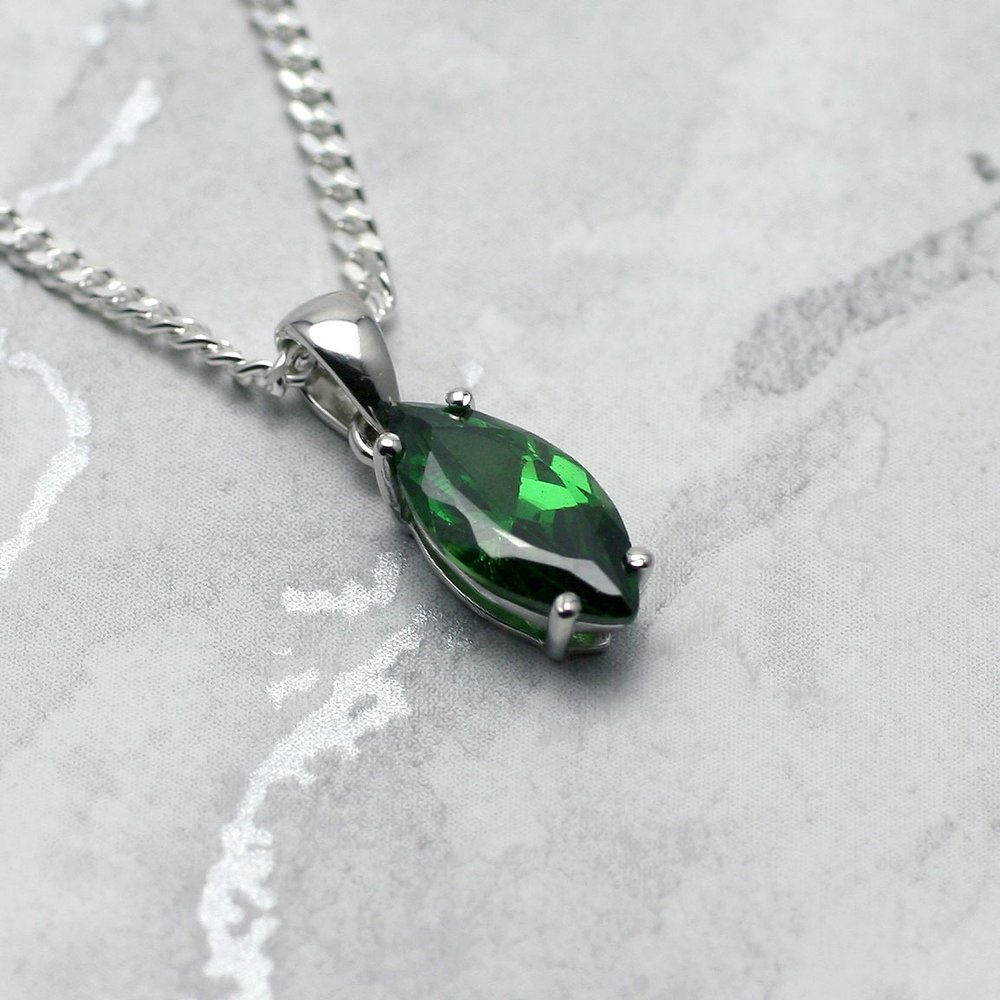 Siberian Quartz Emerald set in .925 Sterling silver. This pendant really makes a statement, the facets reflect the light and make the pendant sparkle in an eyecatching way.
