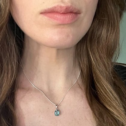 Siberian Quartz Blue Spinel set in .925 Sterling silver. This pendant really makes a statement, the facets reflect the light and make the pendant sparkle in an eyecatching way.