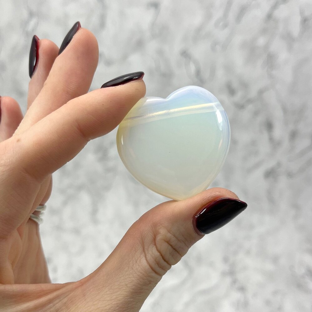 Cord not included. Each Opalite heart is unique and may vary in colour.