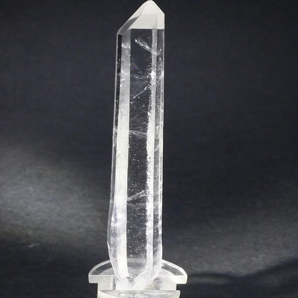 This wonderful Silver Quartz Point is a fantastically clear prismatic crystal which disperses light into beautiful rainbows, almost like lead glass crystal.