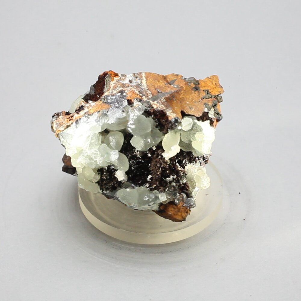 Pale translucent blue/green Smithsonite on a limonite matrix from the famous San Antonio Mine, Chihuahua, Mexico.