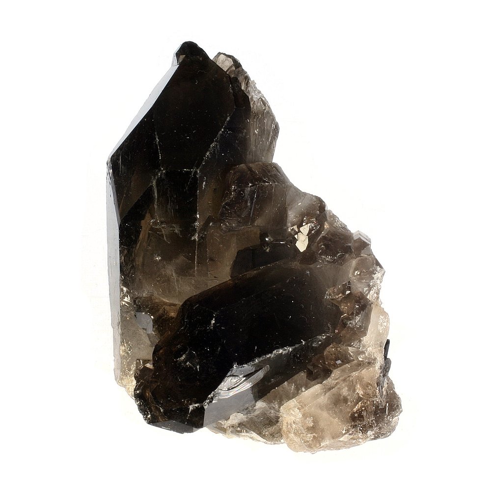 A striking cluster of Smoky Quartz Crystal Points. Smoky Quartz is thought to dampen electromagnetic stress and block geopathic stress. This Quartz variety is said to bring with it a positive vibration that fills the room. This vibration is purported to gently dissolve negative emotions and energies. This quality means that Smoky Quartz is often recommended by crystal healers to relieve mild depression and anxiety.