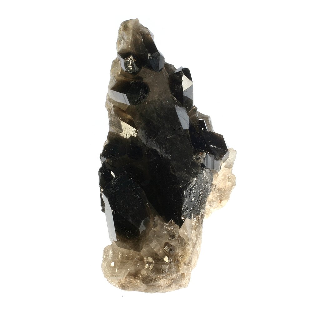 A striking cluster of Smoky Quartz Crystal Points. Smoky Quartz is thought to dampen electromagnetic stress and block geopathic stress. This Quartz variety is said to bring with it a positive vibration that fills the room. This vibration is purported to gently dissolve negative emotions and energies. This quality means that Smoky Quartz is often recommended by crystal healers to relieve mild depression and anxiety.