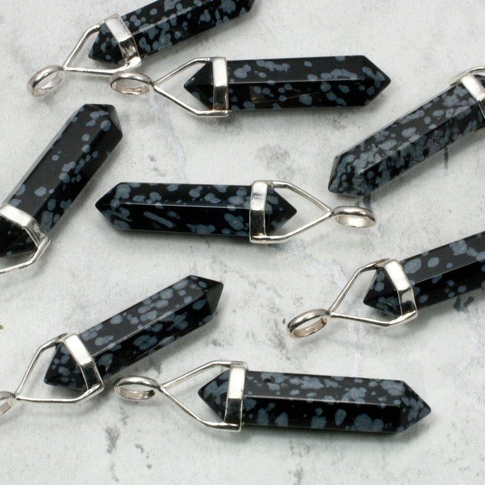 Feel more balanced and your spirits lifted when you wear this beautiful Double Terminated Snowflake Obsidian and Silver Point Pendant.