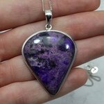 This pendant features natural sugilite set in .925 silver. Sugilite is a relatively rare crystal with a soothing, optimistic energy. It is believed to cure migraines, headaches and anxiety.