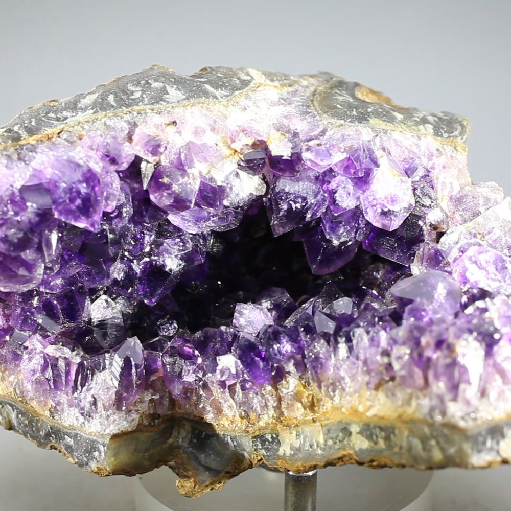 With lustrous crystal points of the deepest purple, this top-grade Uruguayan amethyst piece sparkles beautifully as the light is reflected from its crystal faces. Whether for home or work, amethyst is a wonderful crystal for display and adds a stylish touch to any interior decor.