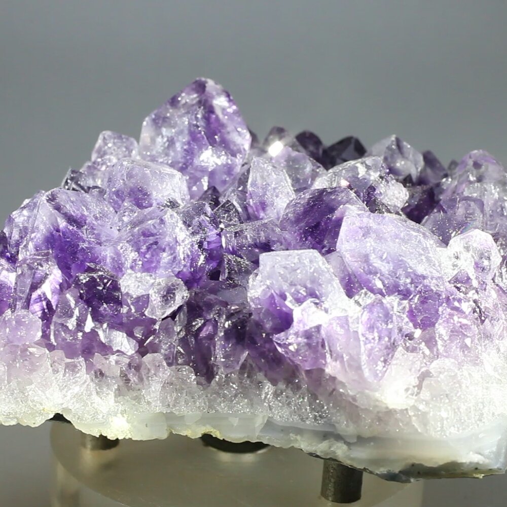 With lustrous crystal points of the deepest purple, this top-grade Uruguayan amethyst piece sparkles beautifully as the light is reflected from its crystal faces. Whether for home or work, amethyst is a wonderful crystal for display and adds a stylish touch to any interior decor.
