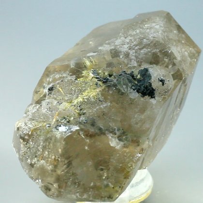 This wonderful Smoky Quartz with Golden Rutile Point has amazing strands of golden rutile that shine in sunlight. It is very eye-catching and highly graded and therefore ideal for display, crystal healing and collecting.