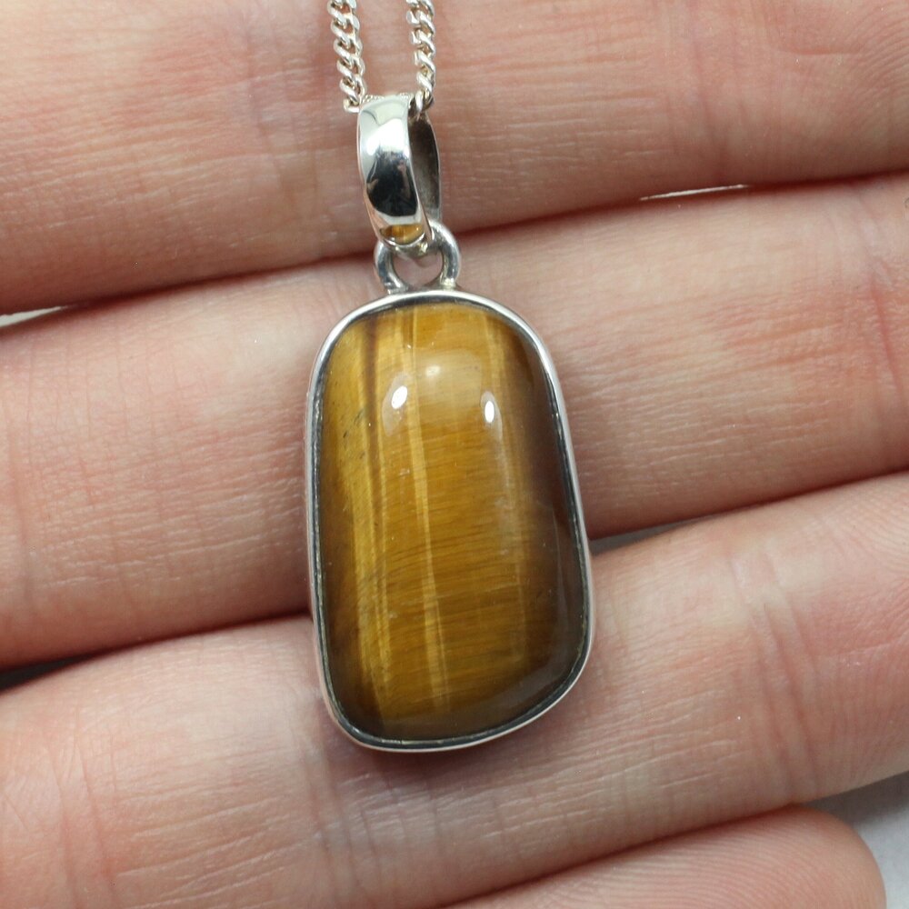 Tiger eye is believed to bring you the courage, strength and cunning of a tiger. It is also said to give confidence and good health. For yourself or a loved one, this tiger eye pendant makes a great little gift.