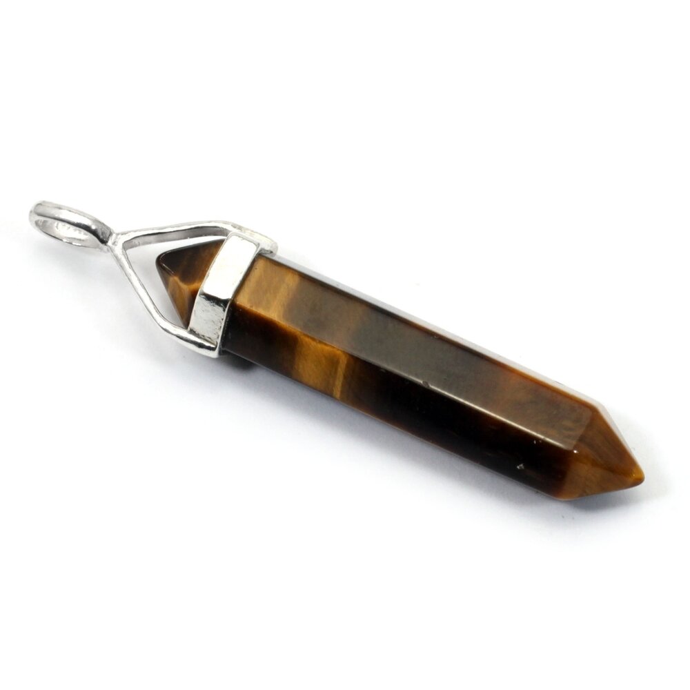 Build courage and confidence in any situation when you wear this beautiful Double Terminated Tiger Eye and Silver Point Pendant.