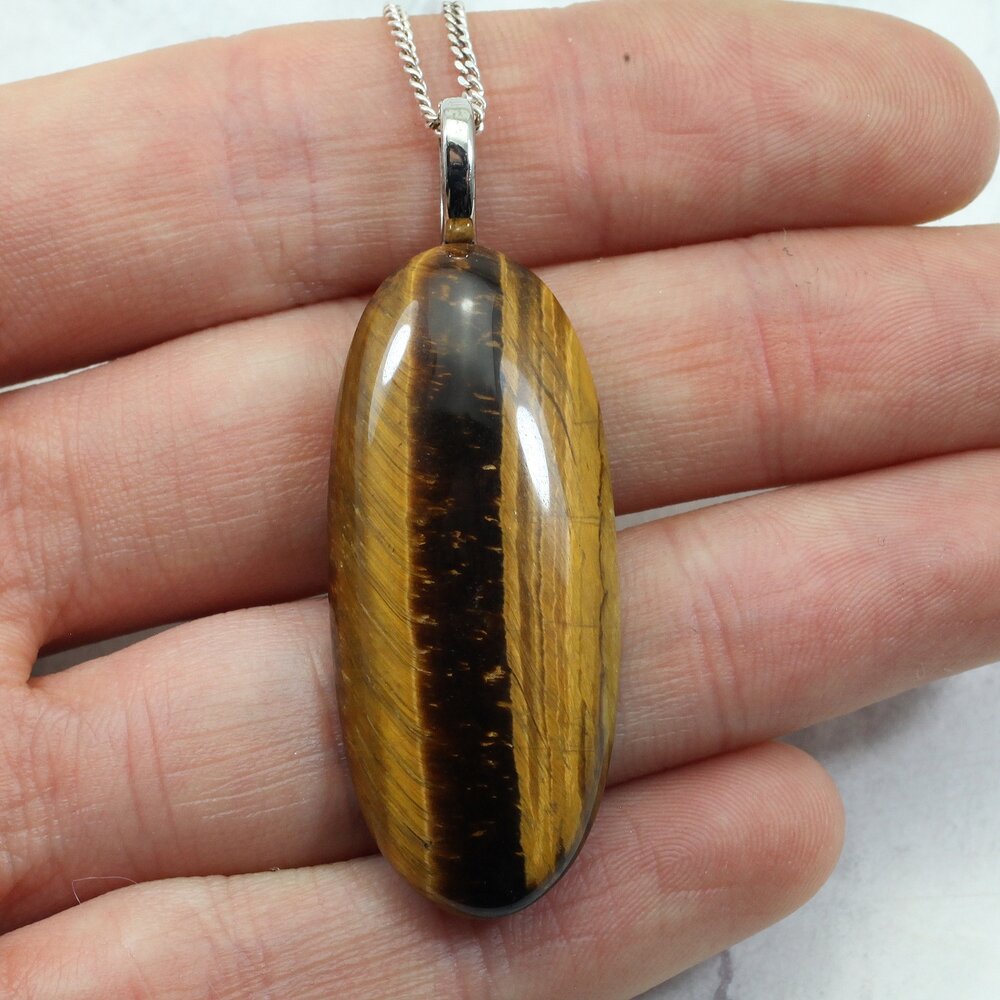 Tiger eye is believed to bring you the courage, strength and cunning of a tiger. It is also said to give confidence and good health. For yourself or a loved one, this tiger eye pendant makes a great little gift.