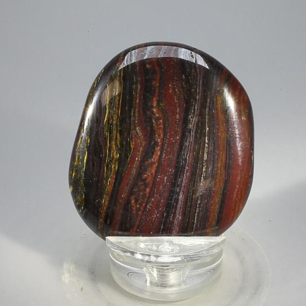 This Tiger Iron Tumble Stone has a beautiful combination of Tiger's Eye, Red Jasper and Hematite.