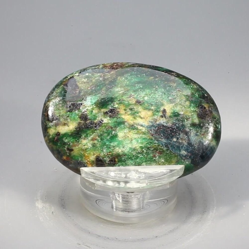 Vibrant, silvery green Fuchsite Mica, iridescent shimmers of Blue Kyanite and flecks of lustrous Red Almandine Garnet make the Trinity Stone a desirable gift or collector’s item.