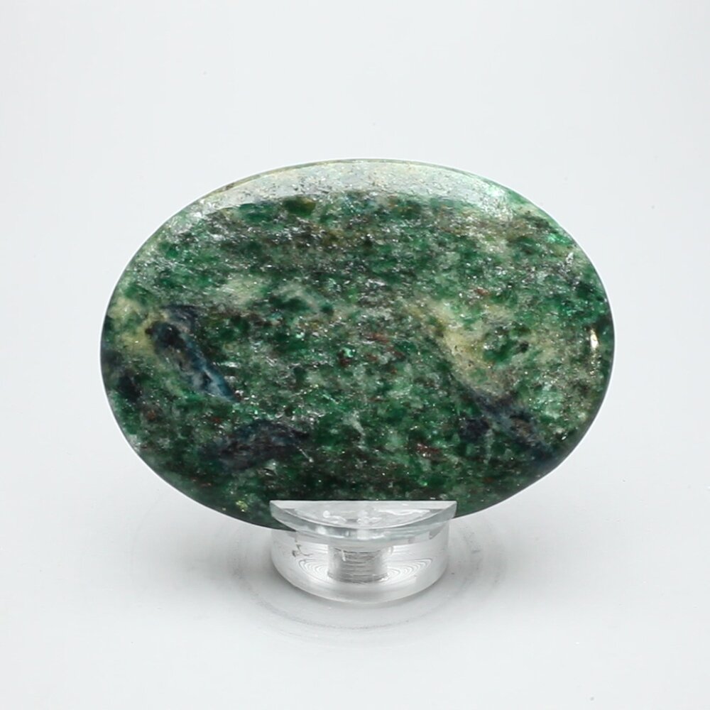 Fuchsite gets its wonderful green colour from the chromium it contains. The colour ranges from a pale, silvery shade to a deeper green that lifts and revives the spirits. Fuchsite is said to help solve problems. It is also believed to help us see and accept the flaws in people, whilst retaining a compassionate touch.