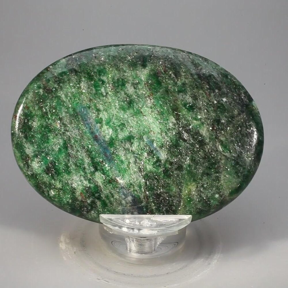 Fuchsite gets its wonderful green colour from the chromium it contains. The colour ranges from a pale, silvery shade to a deeper green that lifts and revives the spirits. Fuchsite is said to help solve problems. It is also believed to help us see and accept the flaws in people, whilst retaining a compassionate touch.